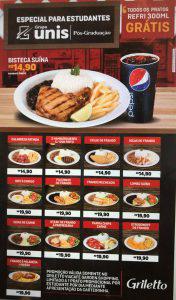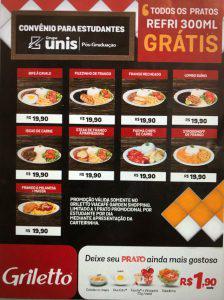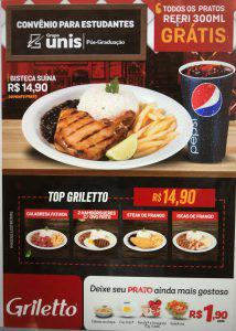 O Griletto é parceiro da Pós-Graduação especializado em alimentação rápida, com um cardápio sob medida para as necessidades e preferências dos nossos alunos, com destaque para combinações que apresentam uma refeição completa e muito nutritiva.